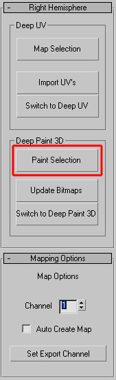 If you've installed Deep Paint correctly, you'll find a "Right Hemisphere" listing under your Utilities tab - click "More" to find it. Double-click on it, then click on the button labeled "Paint Selection" - that'll load up Deep Paint, and send the object and materials over to it. You'll see a "Material Import" dialog - hit OK.