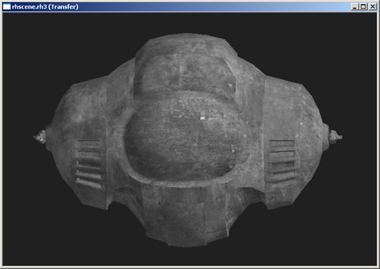 I'm not partial to Deep Paint's paintbrush tools, so I'll walk you through exporting to and from photoshop. First, in Max, I'll apply a new material with a rough-looking texture map to the ship, just as a starting point. (We're not going to do a real detailed texture here, I'm just going through the motions.)